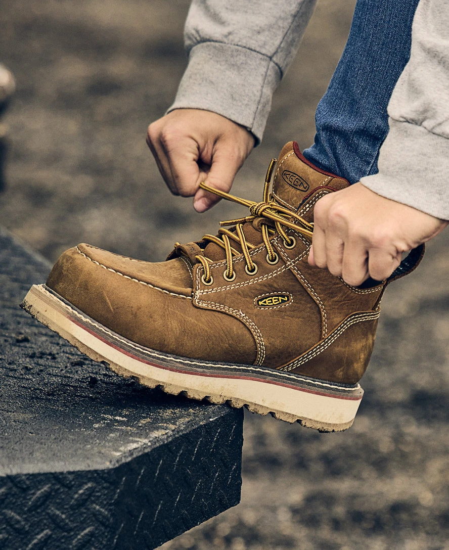 Keen Men’s Pittsburgh Energy 6″ Waterproof Boot (Carbon-Fiber Toe) | Cascade Brown/Greener Pastures